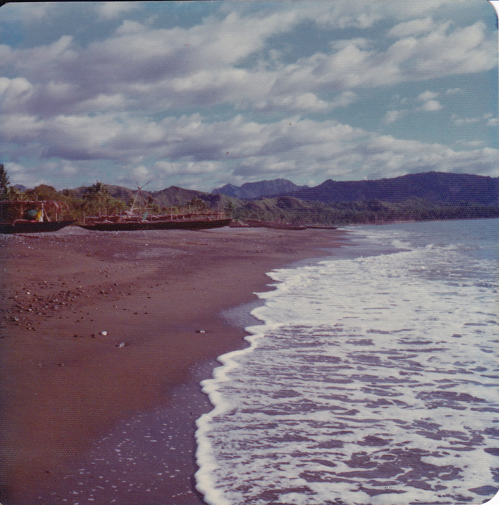 As for the current health report…all of us are wiped out and alternately full of shit or crappin’ out with cases of terminal diarrhea. I was one of the only 2 people in my language class today and I’ve got a terrible cold, tonsillitis, a helluva sunburn & constipation. We all just seem to keep getting sunburned but not really tanning. Oh but it was worth it this time—Sunday we took small boats to a deserted island for the day. In one direction it was shallow enough to wade and look for shells for 2 miles out. Signing off to crash (if I can sleep…I can’t breath & I can’t lay on my sunburn).