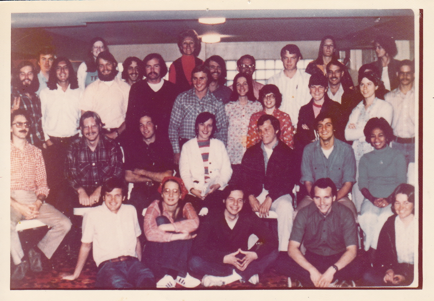 “Philippines Group 81” in San Francisco. There are also a few extra folks present for training, but most are our group. On the floor in the front, from left to right: Rick, Sioux, Neal, Terry, and Patty On the chairs: unknown admin/training person, Chris, Peter, Toni, Steve, Jerry, unknown admin/training person Front standing row: Dave, Bob N., Tom, Mike McQ, Ken, training person from Philippine PCV Group 2, Linda, Crain, Marilyn Second row standing: Craig, Bob R, James, Brian Furby, Paul, Mike Z., Joe (I think, behind me), Jon Standing on chairs in back row: Kathy, Unknown admin/training person, two Philippine Group 2 PCV’s for training Missing: Pat C., Betty (it’s possible they were somehow cut off to the left)